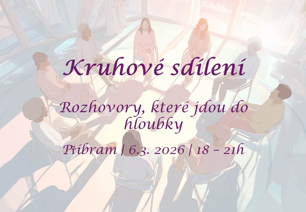 Kruhové sdílení - smysluplné rozhovory, které se rozvíjejí do hloubky v prostoru, kde nikdo nikoho nehodnotí, kde se může vyjádřit každý, současně nikdo nemusí odpovídat na otázky, na které odpovídat nechce.